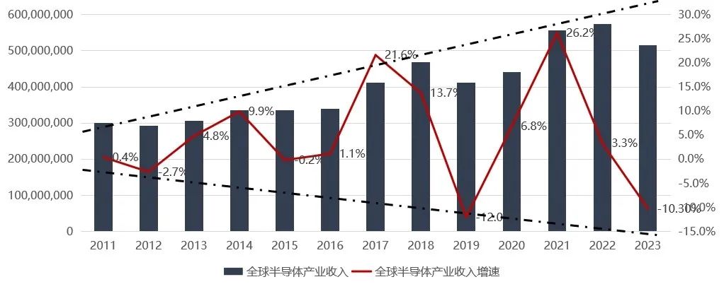 圖2 近10年來(lái)全球半導(dǎo)體產(chǎn)業(yè)銷售收入及增速變化