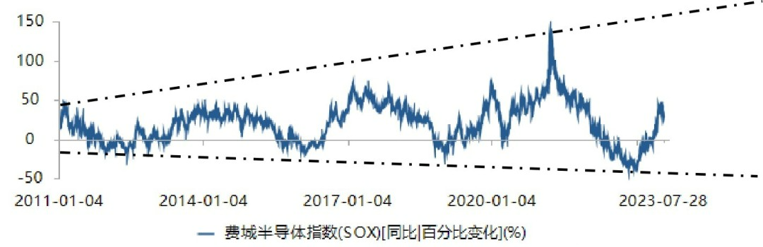圖3 近10年來(lái)費(fèi)城半導(dǎo)體指數(shù)同比變化