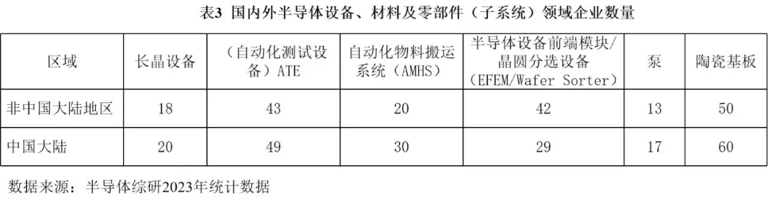 一是結(jié)構(gòu)性“內(nèi)卷化”為主。集成電路支撐業(yè)的“內(nèi)卷化”集中在熱點(diǎn)品類上,例如硅片長(zhǎng)晶設(shè)備;半導(dǎo)體前道設(shè)備中的濕法、薄膜、化學(xué)機(jī)械拋光(CMP)設(shè)備及耗材、熱處理、量檢測(cè)設(shè)備、后道設(shè)備中的ATE、劃片機(jī)等;半導(dǎo)體材料里的大硅片、特氣和化學(xué)品、陶瓷基板等;零部件和子系統(tǒng)中的AMHS(自動(dòng)化物料搬運(yùn)系統(tǒng))、閥門、泵、硅結(jié)構(gòu)件、EFEM(半導(dǎo)體設(shè)備前端模塊)、石英件等。幾乎每個(gè)領(lǐng)域國(guó)內(nèi)企業(yè)數(shù)量都超過10家,最多的領(lǐng)域高達(dá)四五十家。而在部分技術(shù)難度較高,國(guó)內(nèi)研發(fā)資源有限,或者國(guó)內(nèi)龍頭企業(yè)優(yōu)勢(shì)已經(jīng)非常明顯的領(lǐng)域,例如涂膠顯影設(shè)備、離子注入設(shè)備、PVD(物理氣相沉積設(shè)備)、靜電吸盤等領(lǐng)域,則鮮少看到“內(nèi)卷化”的發(fā)生。