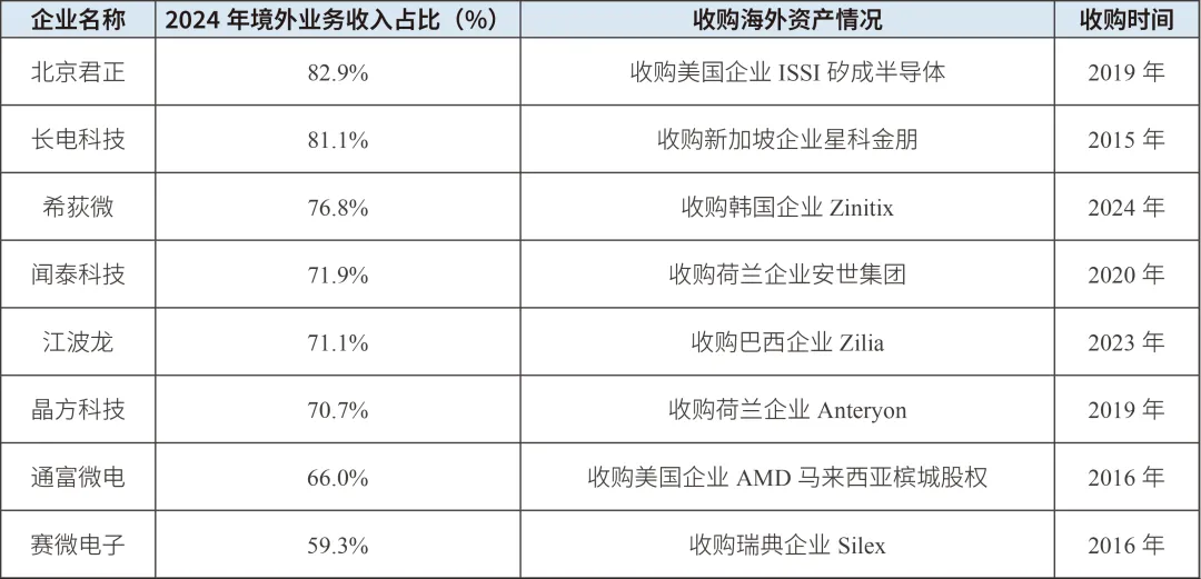表2:集成電路各產業鏈環節上市企業2024年境外業務收入占比