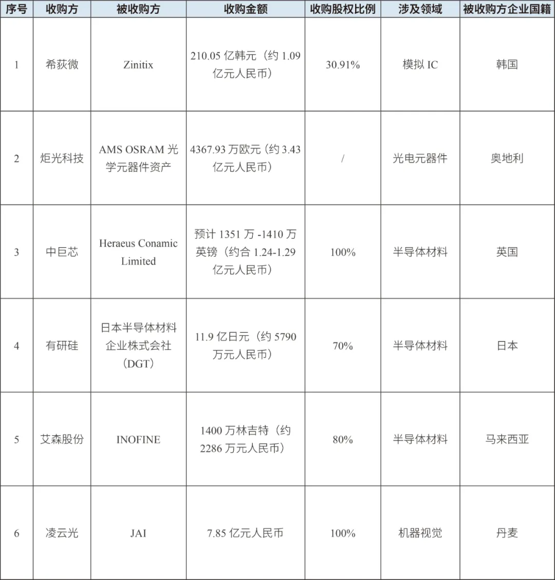 表5: 2024年我國集成電路上市企業開展的海外并購項目