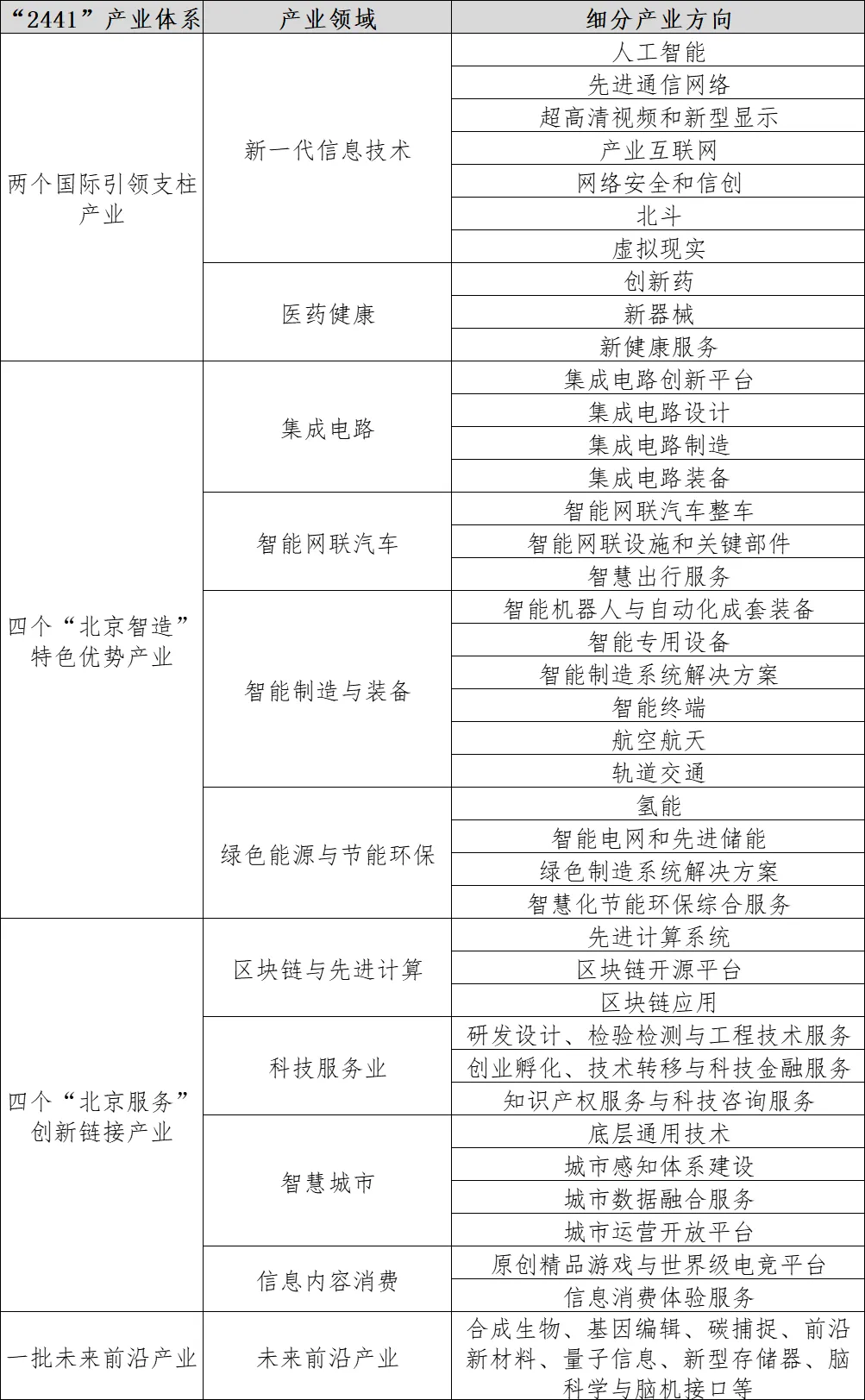 表2 “2441”高精尖產(chǎn)業(yè)細分方向