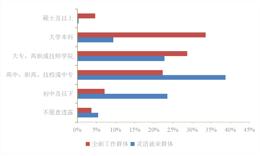 圖 2 平臺(tái)靈活就業(yè)與全職工作群體學(xué)歷分布