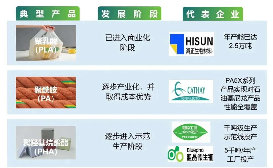 為根本上解決能源與環境困境,避免“與人爭糧”,實現可持續發展,非糧生物質(農作物秸稈、玉米芯、工業尾氣等)的高效利用成為研究熱點。當前其開發利用過程中存在著破解纖維素糖化困難、分離純化成本高等難題,通過高效催化酶培育、底盤細胞改造、工程菌選育、酶蛋白元件制備等合成生物技術,可加快提高非糧生物質原料的開發利用效能。目前,秸稈纖維素、合成氣等原料的開發相對成熟、步入商業化驗證,大部分新型碳源尚處實驗室或小試階段。如,BASF(德國)以蓖麻油為原料的生物基PA11已用于馬自達汽車關鍵零部件;凱賽生物(上海)秸稈制乳酸項目的發酵工藝已經得到驗證;合曜生物(南京)自主開發的特色“中國紅酵母”可顯著增強纖維素水解液利用能力,已應用于抗衰化妝品原料等。