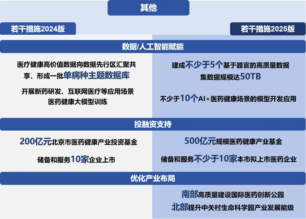 4月7日,北京市醫(yī)保局、市衛(wèi)生健康委等九部門聯(lián)合發(fā)布《北京市支持創(chuàng)新醫(yī)藥高質(zhì)量發(fā)展若干措施(2025年)》(簡稱《若干措施2025版》),從創(chuàng)新研發(fā)、臨床試驗、審評審批、生產(chǎn)制造、流通貿(mào)易、臨床應(yīng)用等全鏈條提出新一輪32條措施,持續(xù)完善“一條鏈”服務(wù),進一步推動北京市“萬億”醫(yī)藥健康產(chǎn)業(yè)再上新臺階。這是北京市醫(yī)保局、市衛(wèi)生健康委等九部門連續(xù)第二年共同出臺支持創(chuàng)新醫(yī)藥高質(zhì)量發(fā)展的專項政策,2024年4月17日發(fā)布的《北京市支持創(chuàng)新醫(yī)藥高質(zhì)量發(fā)展若干措施(2024年)》(簡稱《若干措施》)實施成效顯著。本文對兩版政策進行對比,結(jié)合北京支持創(chuàng)新醫(yī)藥發(fā)展的實際成效,梳理《若干措施2025版》的政策亮點。