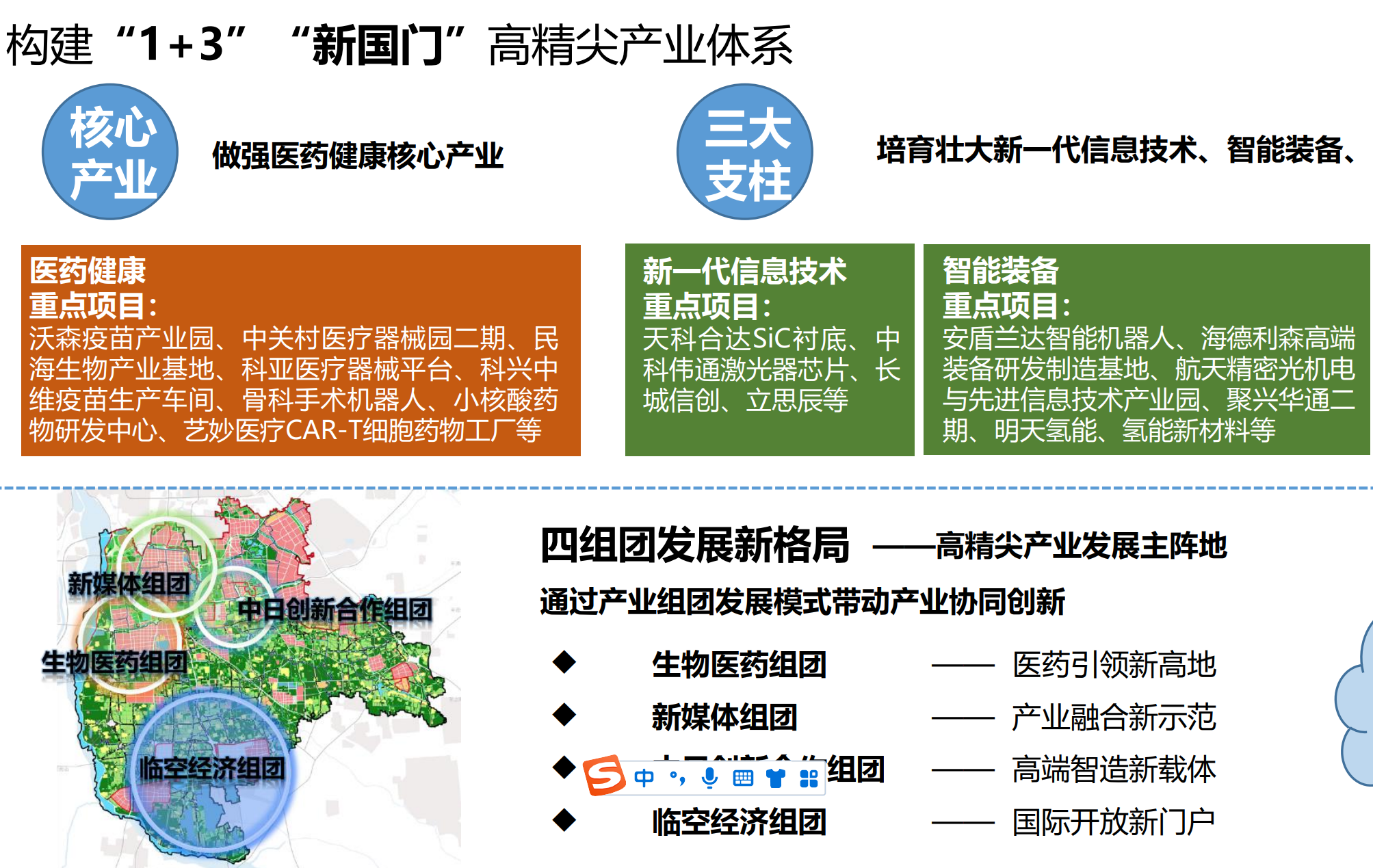 規(guī)劃梳理總結(jié)大興區(qū)高精尖產(chǎn)業(yè)現(xiàn)狀和形勢,提出大興區(qū)未來發(fā)展思路目標、重點方向和布局、發(fā)展路徑及保障措施。即把握北京“兩區(qū)”建設(shè)重大契機,深入實施“產(chǎn)業(yè)強區(qū)”戰(zhàn)略,充分發(fā)揮機場交通樞紐新門戶作用,做強醫(yī)藥健康核心產(chǎn)業(yè),培育新一代信息技術(shù)、智能裝備和科技服務(wù)支柱產(chǎn)業(yè),構(gòu)建“1+3”高精尖產(chǎn)業(yè)體系,打造科技創(chuàng)新“新高地”、首都發(fā)展“新空間”、對外開放“新門戶”。